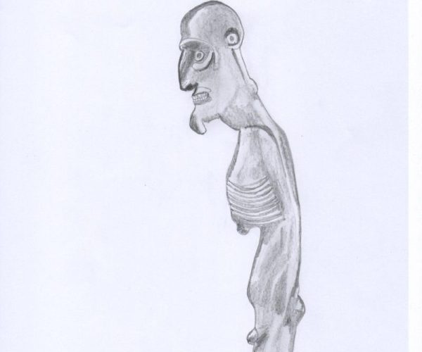 Cet essai n’est pas sans intérêt, loin de là mon propos. Il y a certainement eu un bouleversement sur l’île lors du passage du culte des Moaï à celui de l’Homme-Oiseau : des traces et des indices de guerres [des armes à pointes de silex, l’abandon des villages, la fortification des grottes] et de famines [statue de bois de personnages efflanqués] [Christopher M. Stevenson et al., 2015., PNAS.].
